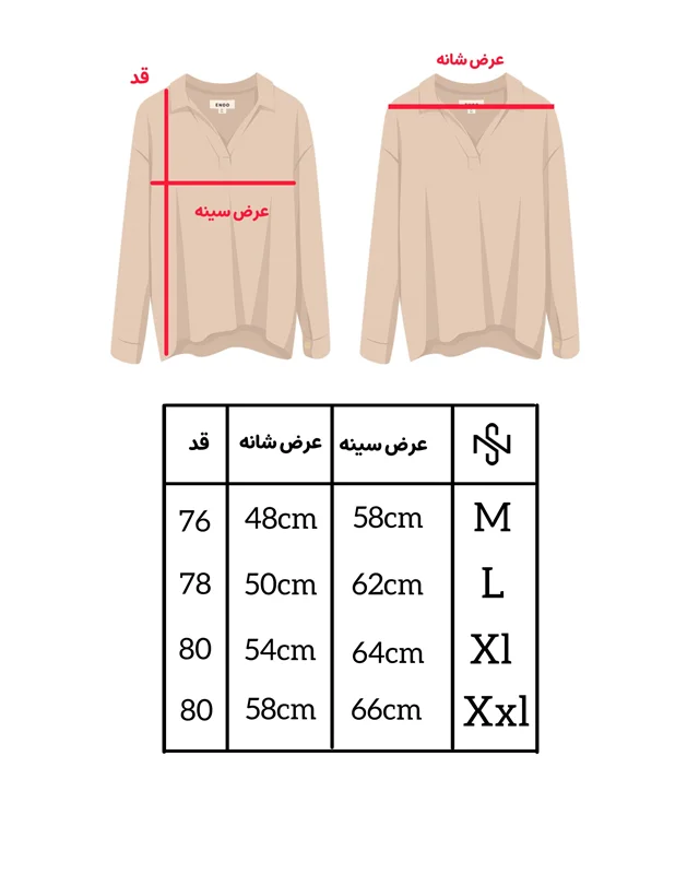⚠️ نکات مهم ⚠️۱- به جدول ابعاد سایز در تصاویر دقت کنید ۲- برای انتخاب سایز صحیح با استفاده از متر عرض سینه و عرض شانه را با یکی از لباس های خود مقایسه کنید ۳- در زمان شستشو برای جلوگیری از تغییر رنگ لباس از مواد شوینده بدون آنزیم استفاده کنید